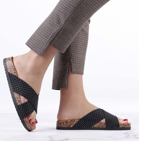 Czarne klapki damskie na korkowym spodzie Jezzi