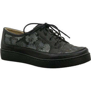 Półbuty czarne damskie skórzane słomkowa podeszwa Helios 397