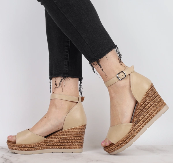 Beżowe buty damskie na klocku z odkrytą piętą Jezzi