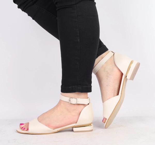 Beżowe sandały damskie zabudowane płaskie ślubne Azali - Produkt Polski