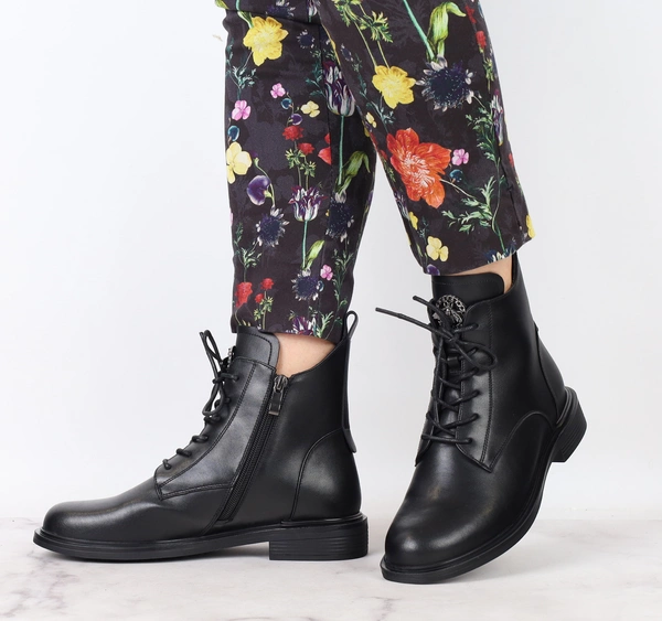 Płaskie czarne buty zimowe na sznurowadła i zamek po boku NEWS
