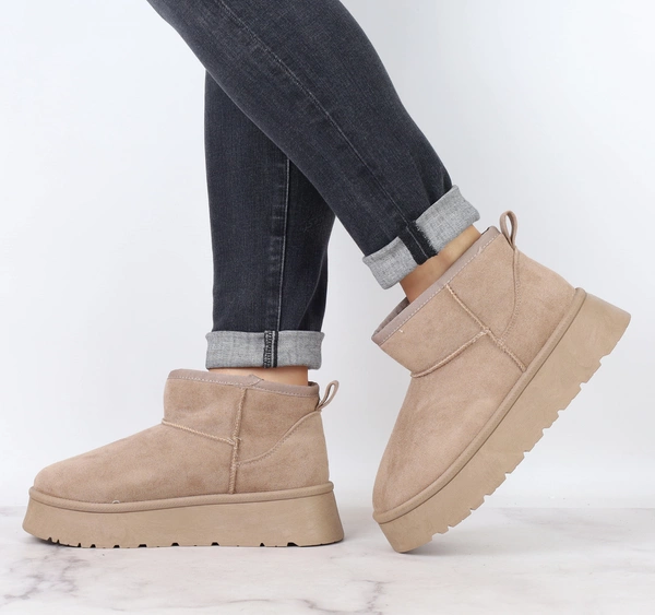 Beżowe zamszowe śniegowce EMU na platformie ciepłe botki- rozmiarówka zaniżona