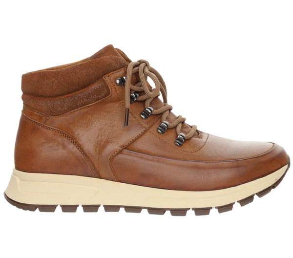Brązowe skórzane adidasy buty zimowe męskie wysokie American Club