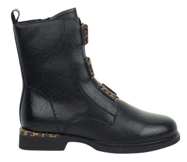 ( ilość produktów: 379 )Czarne botki damskie płaskie ze skóry naturalnej z elementami panterki VINCEZA
