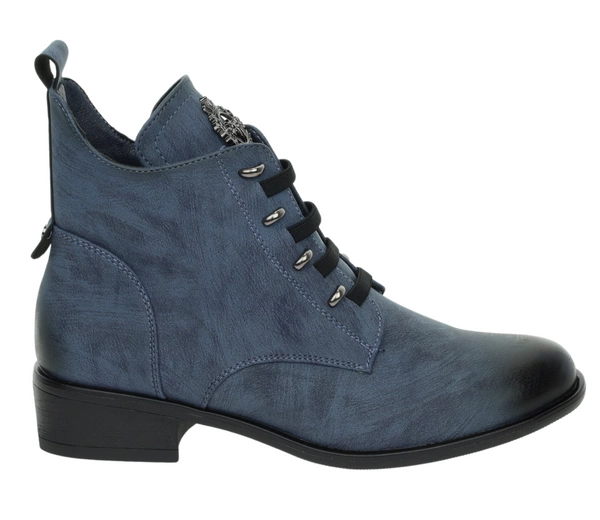 Niebieskie półbuty damskie ocieplane za kostkę na zamek eleganckie Jezzi