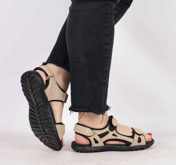 Beżowe sportowe sandały damskie na rzepy ze skórzaną wkładką American