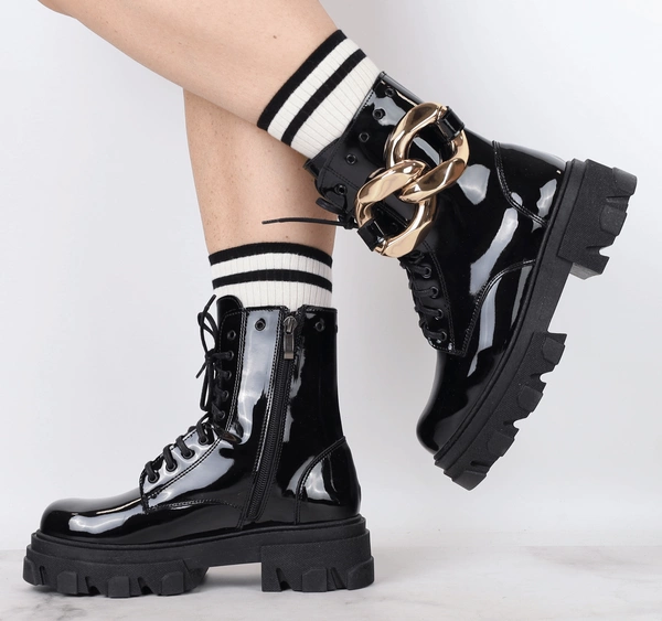 Ciężkie botki damskie skórzane lakierowane Gino Fabiani
