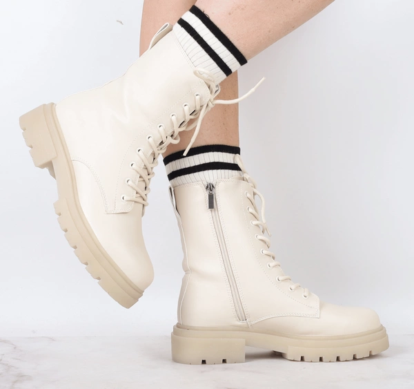 Beżowe botki damskie płaskie komfortowe traperki skórzane Jezzi